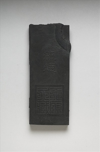 四墨共置一木匣內,附一張長方山水絹畫,有清高宗第八子永璇(1746-1832)書御製題句。是乾隆成套集錦叢墨中的一匣。