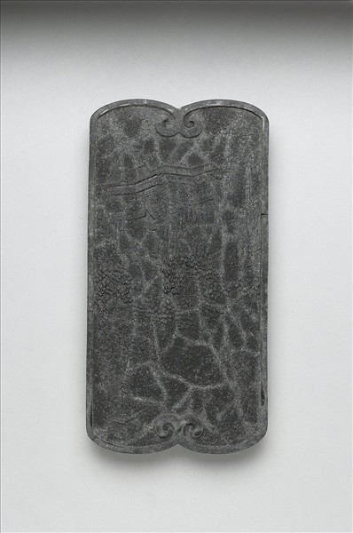 長方形墨,四角圓弧,邊框起棱,邊稜於墨面首尾皆交接為一雲狀紋。一面填金楷字「乾隆辛卯年製」(1771)、「御墨」款識,並模鈐填金「仙居臺閣」四字。一面模印山水樓閣景觀,山間樓閣偉麗,雲霧環繞如在仙境,樓前有人聚坐奕棋,墨面左下一人正過橋前行,或即欲入山訪道者。此墨與其他三墨同儲一屜。