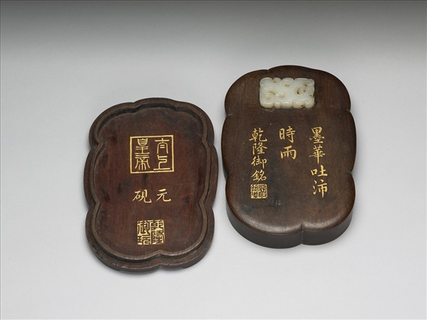 檀木嵌螭龍紋玉飾木盒
