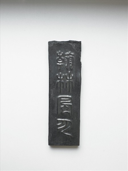 長方形墨,表面光緻。墨之一面模印:「翰林風月」四篆字,一面模印類雲氣與鳳鳥之紋樣為飾。此墨與其他十三墨同儲於一盒。