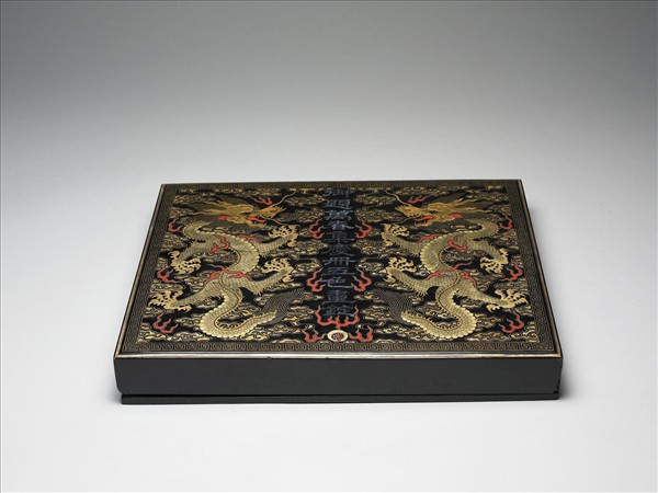黑漆描金嵌螺鈿雙龍紋盒