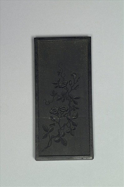 長方形墨,邊框起棱。一面有填金隸書乾隆詩作:「御詠凌霄。翠蔓朱華嬝嬝柔,陸離搖曳足風流,饒伊縱有凌霄志,不附喬柯嘆末由。」一面模印凌霄花由左下角斜出,花作盛開之貌。墨側有「大清乾隆年製」楷款。是墨與其他四十七塊同儲一盒,為成套之乾隆御製花卉詩套墨。
