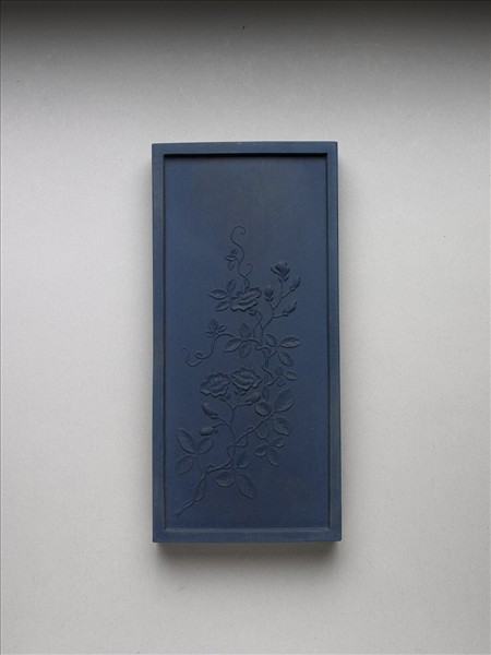 長方形藍色墨,邊框起棱。一面有填金隸書乾隆詩作:「御詠凌霄。翠蔓朱華嬝嬝柔,陸離搖曳足風流,饒伊縱有凌霄志,不附高柯嘆末由。」一面模印凌霄花由左下角斜出,花作盛開之貌。是墨與其他二十四塊同儲一盒,為成套之御製花卉詩套墨。
