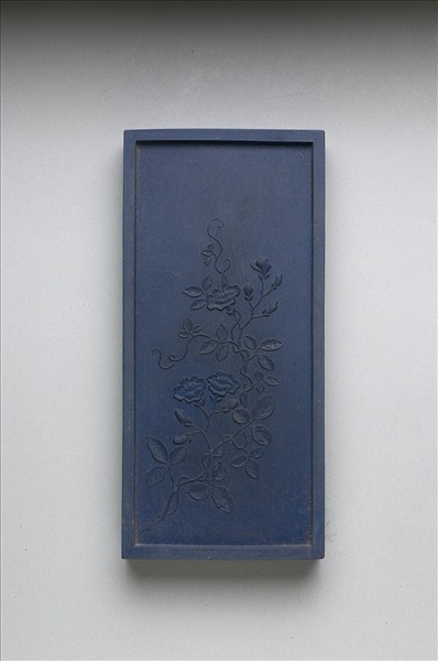 長方形藍色墨,邊框起棱。一面有填金隸書乾隆詩作:「御詠凌霄。翠蔓朱華嬝嬝柔,陸離搖曳足風流,饒伊縱有凌霄志,不附高柯嘆末由。」一面模印凌霄花由左下角斜出,花作盛開之貌。是墨與其他二十四塊同儲一盒,為成套之御製花卉詩套墨。