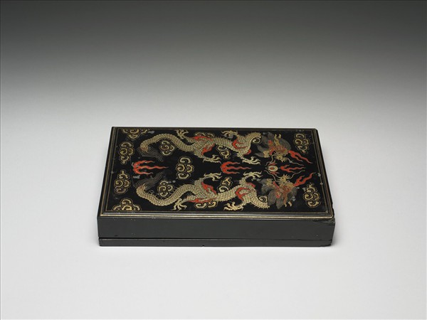 黑漆描金雙龍盒