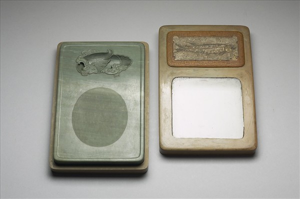 松花石嵌魚化石雙鳳硯
