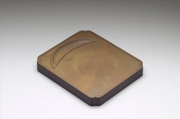 硯近正方形,澄泥製,硯色黃,質潤澤猶如蒸栗,硯面受墨處平整,墨池作偃月形,硯面周緣有凸起弦紋一道,四角棱作圓窪而棱向內四角作。硯背平寬,中鐫清高宗御銘一首,此硯併收入《清高宗御製詩文全集一》,《御製文二集》,卷四十,頁一,硯銘:「點周易,艱難研理,批奏章,俱臧否,遣興摛詞餘事耳,然而無不慙乎爾。」楷書,款題:「乾隆丙申御銘」,有鈐印一:「朗潤」,按「乾隆丙申」為清乾隆四十一年,西元1776。