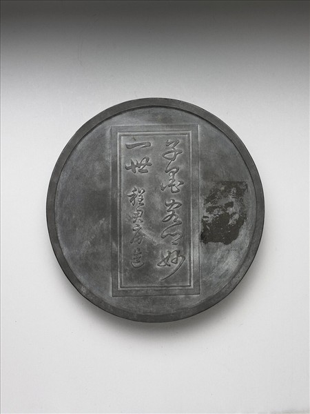 圓墨,形大體厚。一面模印渾天儀圖樣,與《程氏墨苑》所載《璿璣玉衡》圖相似。一面陽文草書︰「子墨客卿妙一世。程君房造。」其文字不在闡釋圖樣含意,與一般明墨習慣不同,落款方式亦異於一般程氏墨。璿璣玉衡,出自《尚書‧舜典》,疏、傳皆謂即漢世以來所稱之渾天儀,是測定天體方位的儀器。早在西元前四世紀的《石氏星經》中似已知使用,至東漢中期張衡( 78 一 139)始完成完整的渾天儀,其後歷代皆有增修;明代正統間複雜的渾天儀現仍矗立在南京,明末文士或曾見及。古代博學多識的士君子,是天文、方志、律曆、音樂、醫藥、卜算無所不通的,故《程氏墨苑》中有玄工、輿地、物華之分,璿璣玉衡亦列其中。