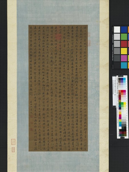 王逢元,生卒年不詳,金陵(今南京)人。字子新,號吉山。王韋之子,擅書,楷法鍾繇,草法王羲之父子。由於父子俱能書,人遂以大令呼逢元。 王逢元以書名於當世,或有人議其真書稍肥,顧璘則謂其莊重沉著,脫去佻巧,獨得鍾、王遺法。另周暉亦謂其書初學王羲之、智永、晚年乃出入黃庭堅。本幅為烏絲欄本,王逢元以行楷書七言律詩九首,運筆間帶有山谷意趣。
