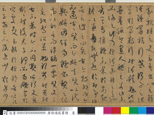 孫過庭(西元七世紀),字虔禮,浙江富陽人(書譜中自稱吳郡人)。〈書譜序〉在短短三千字的文內,品評古代書法家的優劣,討論書法的技巧與經驗,並總結從六朝到唐代以來的書法理論。 本文不僅是寶貴的早期書法理論史料,本身更是一件優美的書法作品。孫過庭的草書深受王羲之章草的影響。全文以圓筆為主,但他的筆劃比王羲之的「十七帖」更變化多端,結構也更修長。