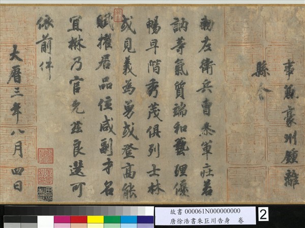 唐徐浩書朱巨川告身 卷