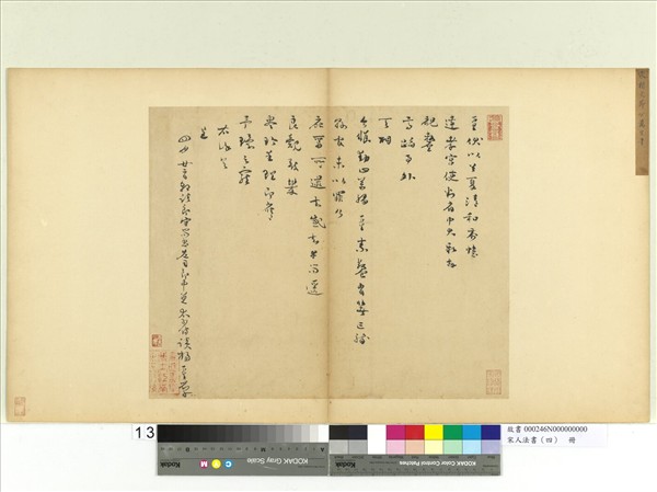 楊万里(1127-1206),字廷秀,號誠齋。吉州吉水(今江西)人。為南宋傑出詩人,風格師法自然,形成獨具特色的「誠齋體」與尤褒、陸游、范成大並稱「南宋中興四大家」。 此劄寫於淳熙十四年四月,受信人為胡達孝。書法呈現個人風格,楊氏雖未以書法見稱,但由其自述書學經歷可知,在書法上廣採諸家,且膺服米芾。南宋中期論書詩中多見楊氏之作,其中多以魏晉鍾王為法,可見南宋時期傳統古典書風及米字之影響。(20101015)