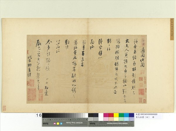 張即之(西元1186-1266年),字溫夫,號樗寮,歷陽烏江人(今安徽省和縣)。他父親張孝伯是孝宗時重臣,官至資政殿大學士,參知政事。張即之以父蔭授承務郎,累官司農寺丞,知嘉興,授直秘閣致仕。是南宋著名畫家,書蹟很受金人欣賞,常以重金搜購,在日本也廣為流傳。此札可能書於晚年退休閒居之時,結字疏密相間,用筆靈巧飄逸,絲毫不見老態。本幅選自「宋人法書冊四」第十六幅。