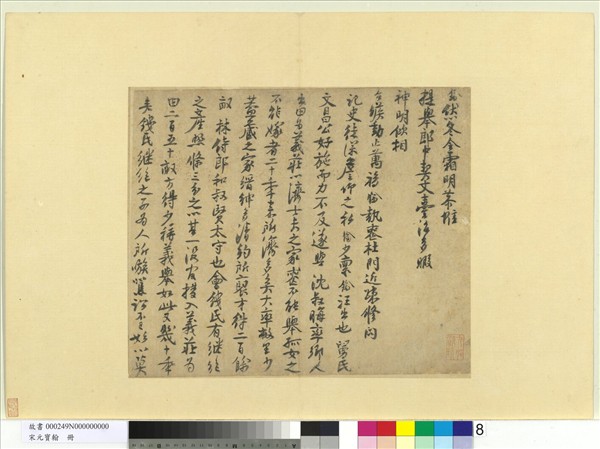 樓鑰(1137-1213),字大防,自號攻媿主人,出身宋代著名四明樓氏,性喜藏書,博通經史百家,精研訓詁,文辭淡雅卻寓意深刻。著有《攻媿集》。書法上善作大字,曾奉宋高宗令書太學之匾。 此劄樓鑰為義莊田產爭訟一事寫信請託。四明地區的義莊是樓鑰之舅汪大猶與沈煥等,仿效北宋范仲淹家族義莊設立,以鄉里貧士與官宦貧窮後人為主要濟助對象,汪氏歿後鄉人推舉樓鑰管理。內容可與樓鑰〈義莊記〉相互印證。(20101015)