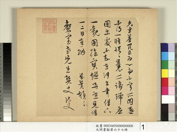元明書翰第六十七冊 冊 張鳳翼尺牘第一則