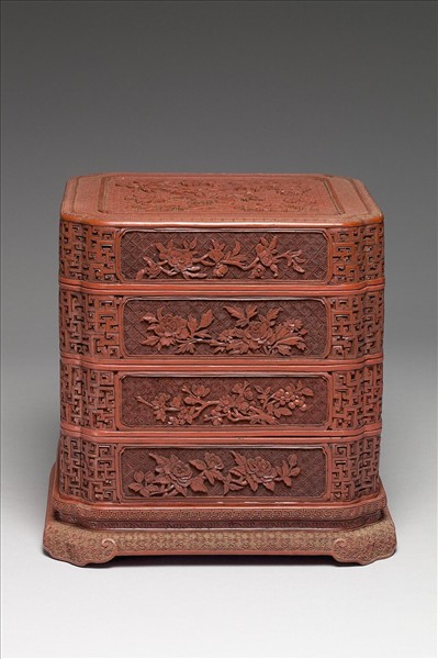 剔紅方形四層套盒
