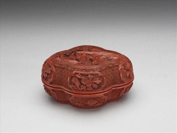 剔紅人物海棠花式盒