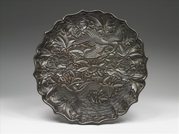 剔黑孔雀牡丹八瓣盤