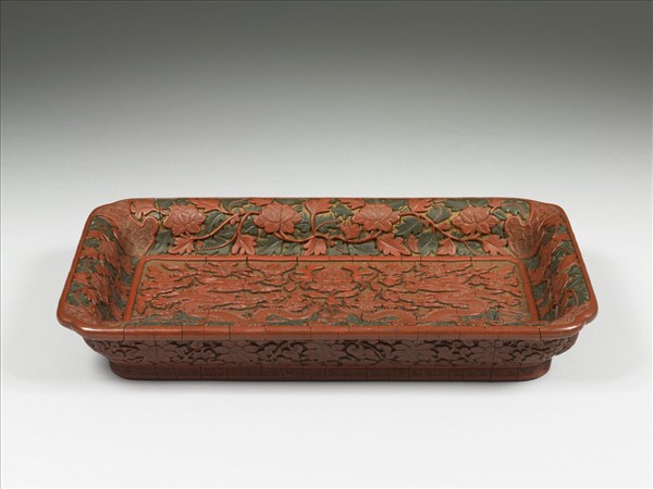 剔彩天下太平雙龍紋長方盤