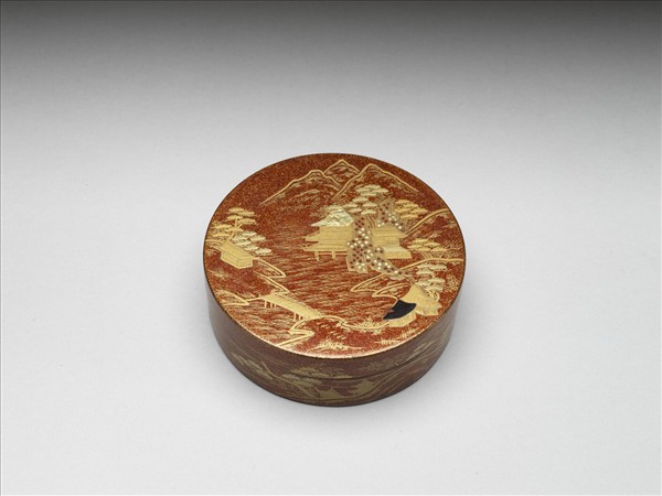 山水蒔繪圓盒