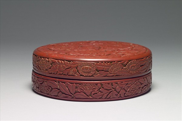 剔紅茶花圓盒