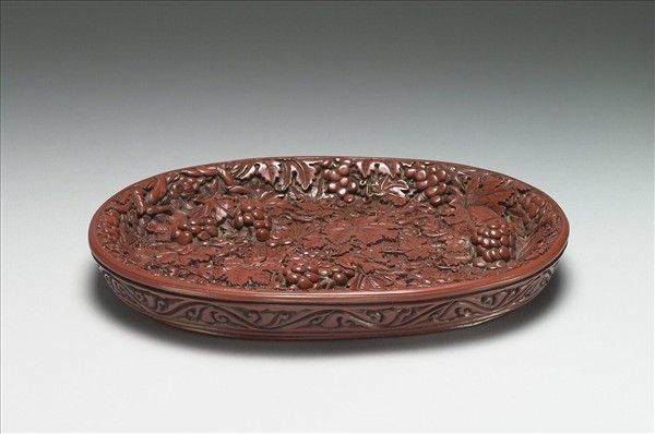 剔紅葡萄紋橢圓盤