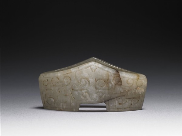 玉質,中空,器表為仿漢代的獸面紋。劍鐔是作為劍身與劍柄之間的間隔,本器為仿戰國晚期至西漢的作品。