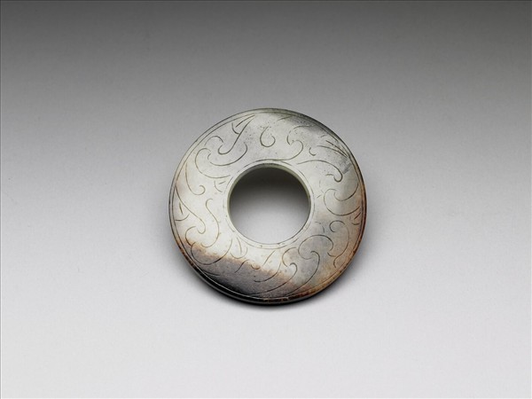 玉質。小璧形,器形規整,面飾陰刻雲紋。