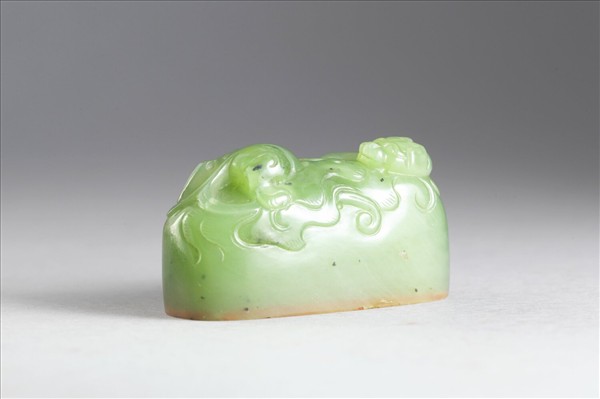 橢圓印,碧玉,雙螭鈕,印面朱文加框「墨雲室」三字。
