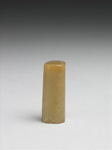 玉質泛黃,呈八棱柱狀。