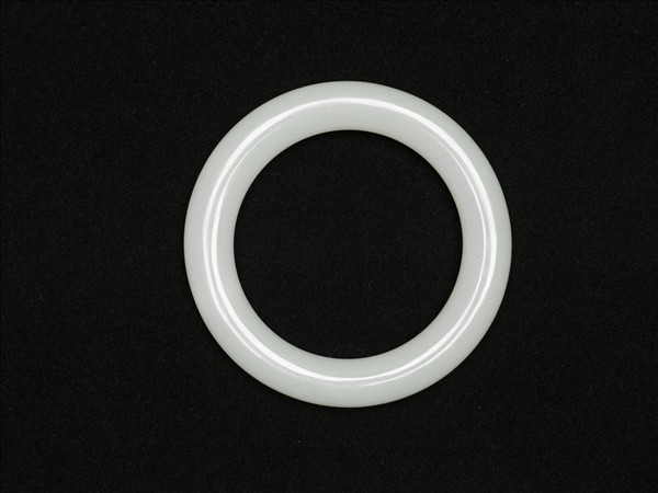 白玉,環形器,全器光素無紋,質地白淨,幾乎未見他色雜質,器面光澤瑩潤。此器一式六件,同儲一木屜。