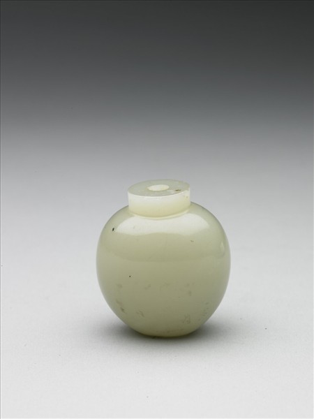 橢圓形鼻煙壺,光素無紋,無蓋。此為一組二十五件白玉煙壺的其中一件。