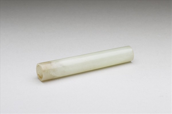 管柱狀筆帽,玉質白潤,與玉筆管(故玉683)配對。