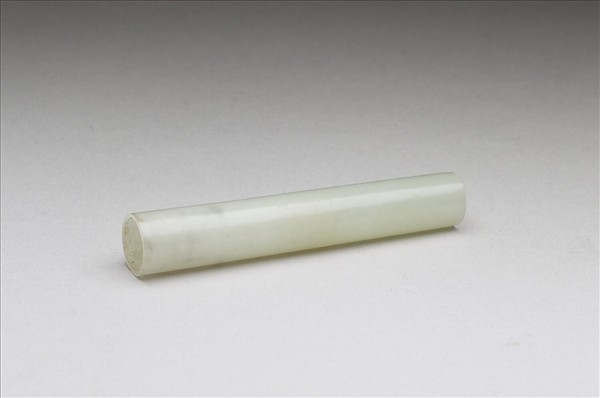 管柱狀筆帽,玉質白潤,與玉筆管(故玉682)配對。