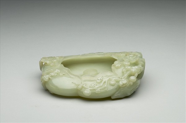 玉質。全器以五瓣梅花為造型,花瓣上揚內卷作為器腹,並以梅枝作為點綴,器底為花心。