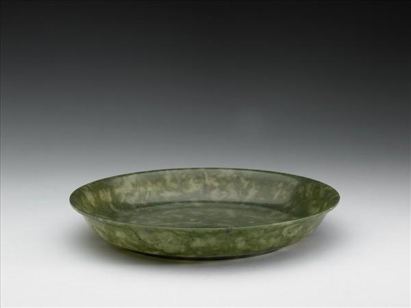 碧玉。侈口、淺壁、平底、淺圈足。黃籤「春字五百三十一號」、秀「四四七五十」(蘇州碼)。