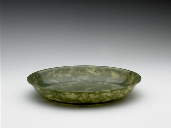 碧玉。侈口、淺壁、平底、淺圈足。黃籤「春字五百三十一號」、秀「四四七五十」(蘇州碼)。