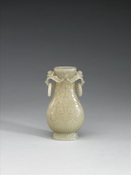 瓶身兩側飾以葉托花帶環式耳,瓶身淺浮雕連枝花葉紋,而近足處及圈足上均飾花瓣紋。明、清時香具的使用,流行將爐、瓶、盒組成一套,爐用以焚香;瓶用以插置鏟、箸;盒則用以盛放香品。