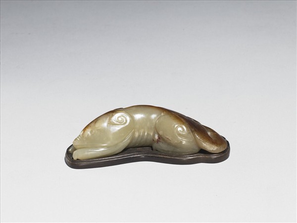 全器立雕臥獸,尾上揚內卷,附木座。
