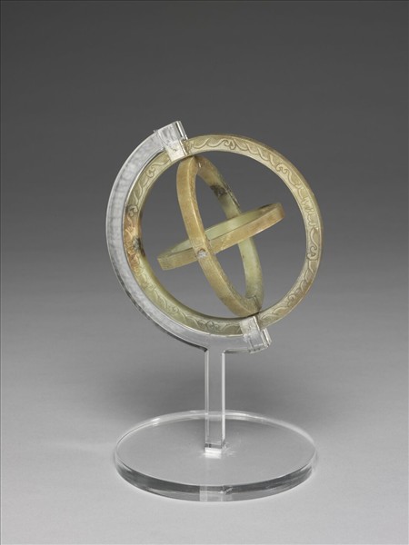 院藏明代玉器中,最值得一提的是件「玉三連環」。中國長久以來即有一觀念:天地間種種的自然現象,皆是人類生活的依歸與準則;而人世也就是宇宙的縮影,所以天、地、人所謂「三才」者是一體的。《易繫辭》:「易之為書也,廣大悉備,有天道焉,有人道焉,有地道焉,兼三才而兩之,故六六者非他也,三才之道也。」這件有褐黃斑之青玉質三連環,正是這個觀念的具象化。其外形,鋪平的時候像一個圓璧,由裡而外劃分為三環:裡環的紋樣為太陽、星辰與雲氣,象徵天;中環琢龍紋,代表人間的帝王;外環則是四方山嶽與海波的圖象,象徵大地。最特殊的一點在於三環可以展開,而展開後天和人、人和地之間,又兩兩以卡榫相連,三者形成一個球體,類似渾天儀般。蘊含如此完整思想體系,而又具有機巧結構、造型的玉器,推測極有可能是由文人雅士設計、蘇州專諸巷的能工巧匠製作。