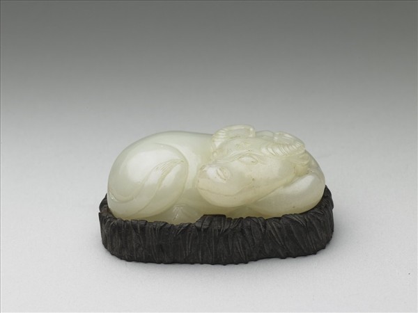 玉牛,為十二生肖動物立雕組之一。牛作蜷伏姿態。附木座,