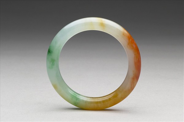 局部呈白色、碧綠及紅色斑。環狀器,全器光素無紋。