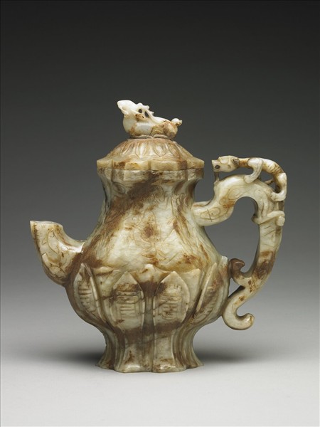 玉人物紋鹿鈕蓋蓮花式執壺