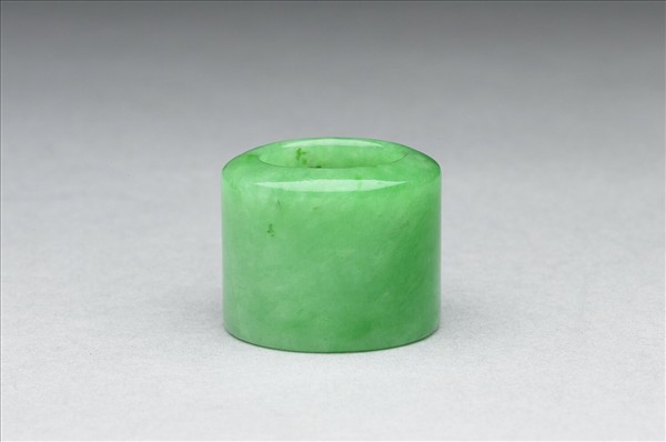 翠玉,器身有璺,為一小圓筒。以玉製作者,多作為佩飾之物。