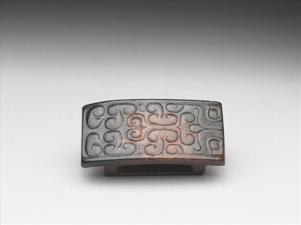器表經過處理成紅褐色、黝黑色。器面飾以淺浮雕雲紋、獸面紋。銅劍與鐵劍是西漢尋常之物,以玉器裝飾而成的玉具劍則較罕見,為彰顯貴族身分地位的禮儀用具。完整的玉具劍共有4件玉組件,分別為玉劍首、玉劍鐔(劍格)、玉劍璏,以及玉劍摽(劍珌);劍璏藉由平整底面和劍鞘貼合綁縛,若是鐵劍或是銅劍生鏽,褐色鐵沁或綠色銅沁常常沁染劍璏底面。