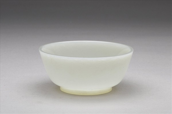 玉質。敞口,斜壁,矮圈足。全器光素無紋。