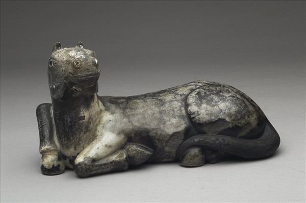 玉質,雕回首臥姿駿馬。面容溫和,毛髮秀逸細緻。