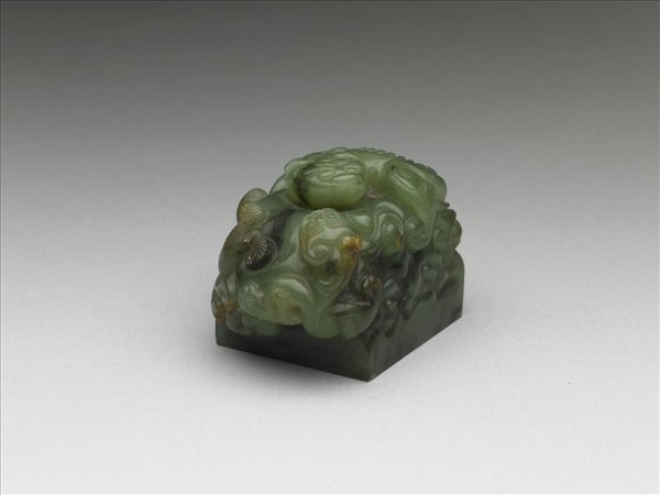 玉質,方形印面,獸鈕,身體纏繞,面面相對。