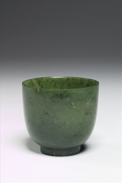碧玉杯,直口、深壁、淺圈足,足沿微傷。