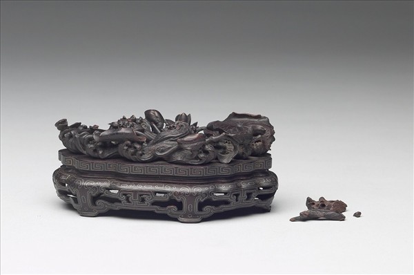 紫檀蓮池紋木座